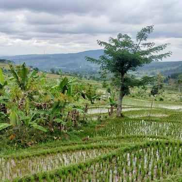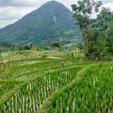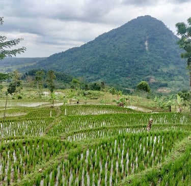 Sawah Subur & Produktif: Lahan asri dengan sumber air bersih melimpah langsung dari gunung.